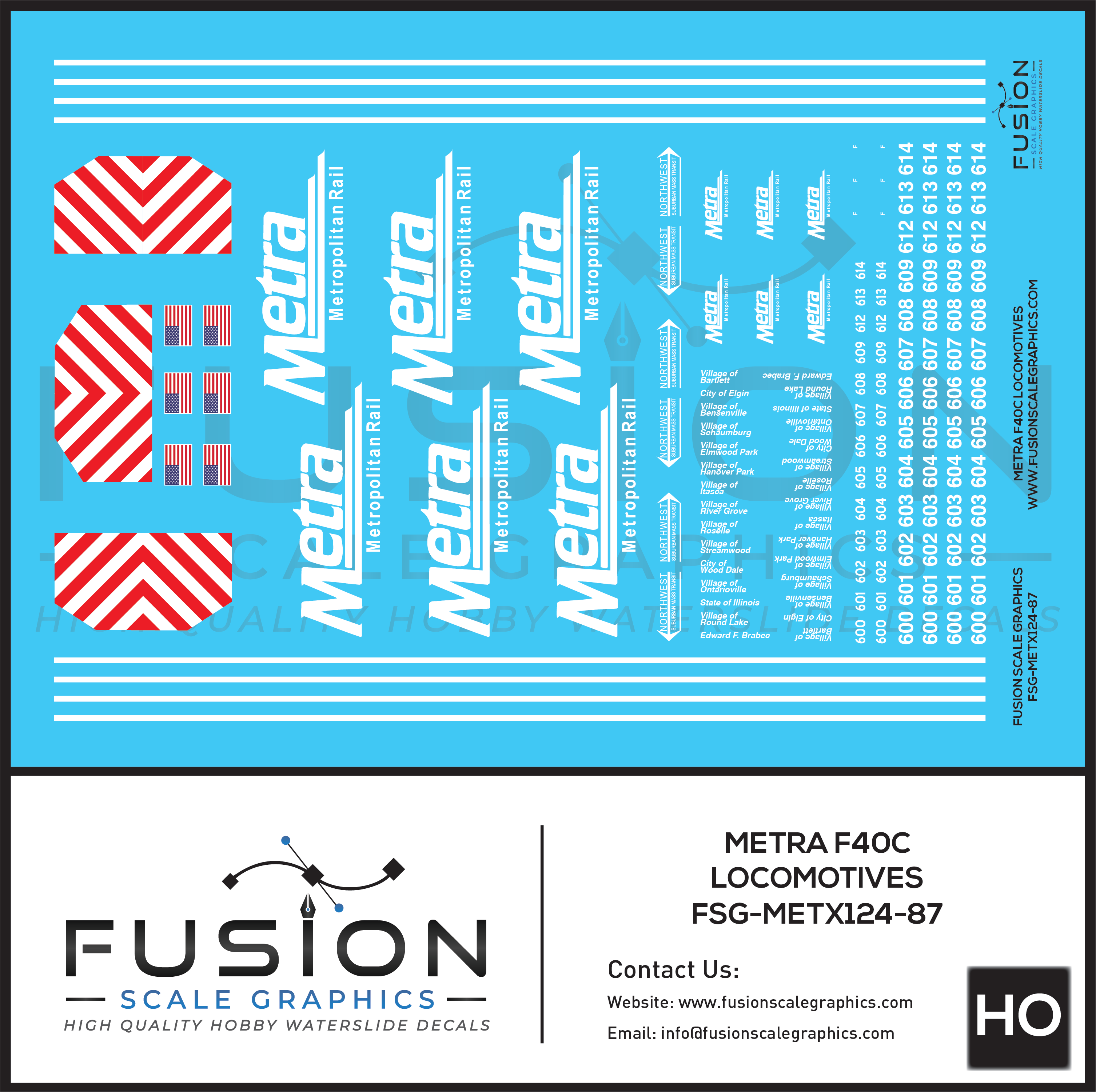 HO Scale Metra EMD F40C Locomotive Decal Set