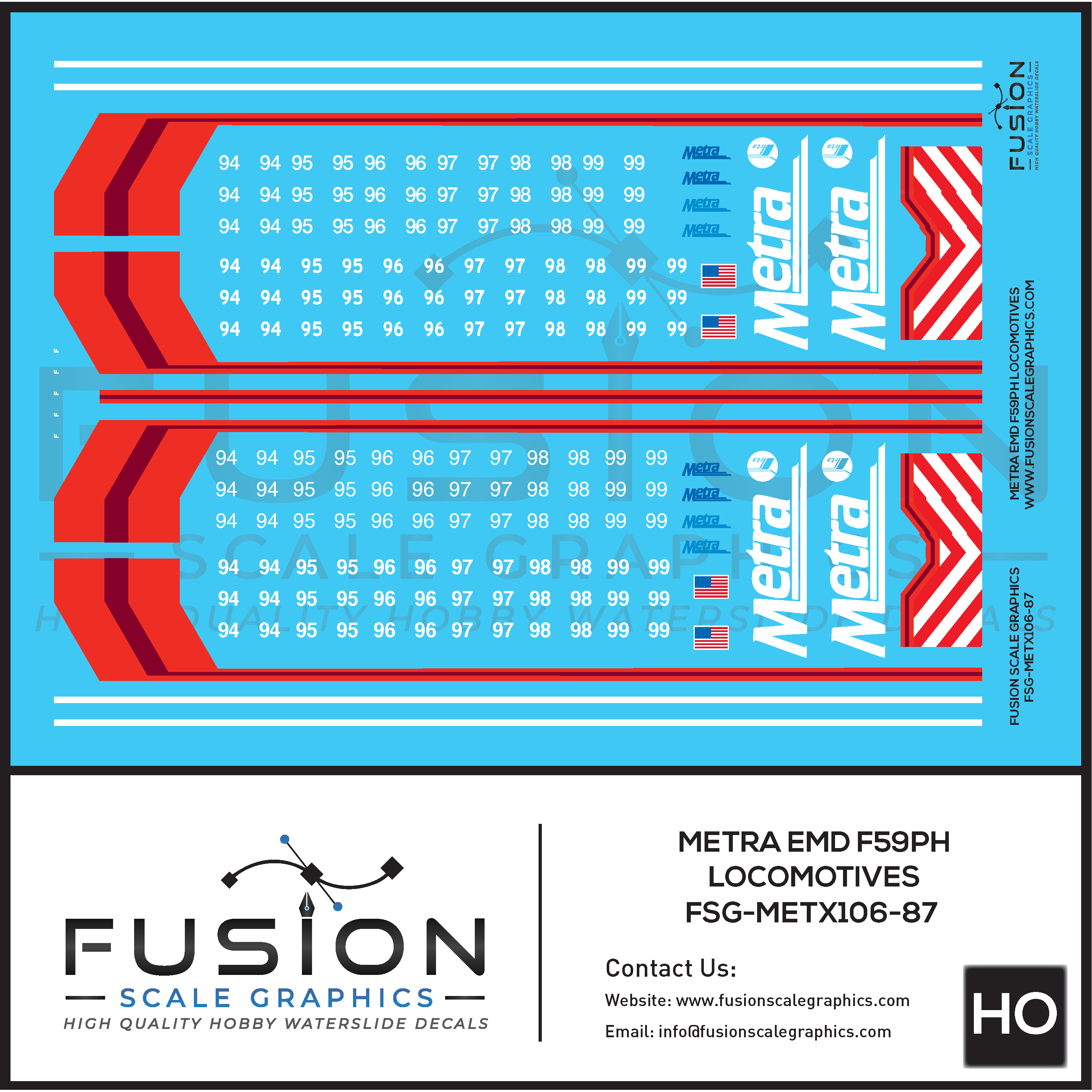 HO Scale Metra EMD F59PH Locomotives Decal Set