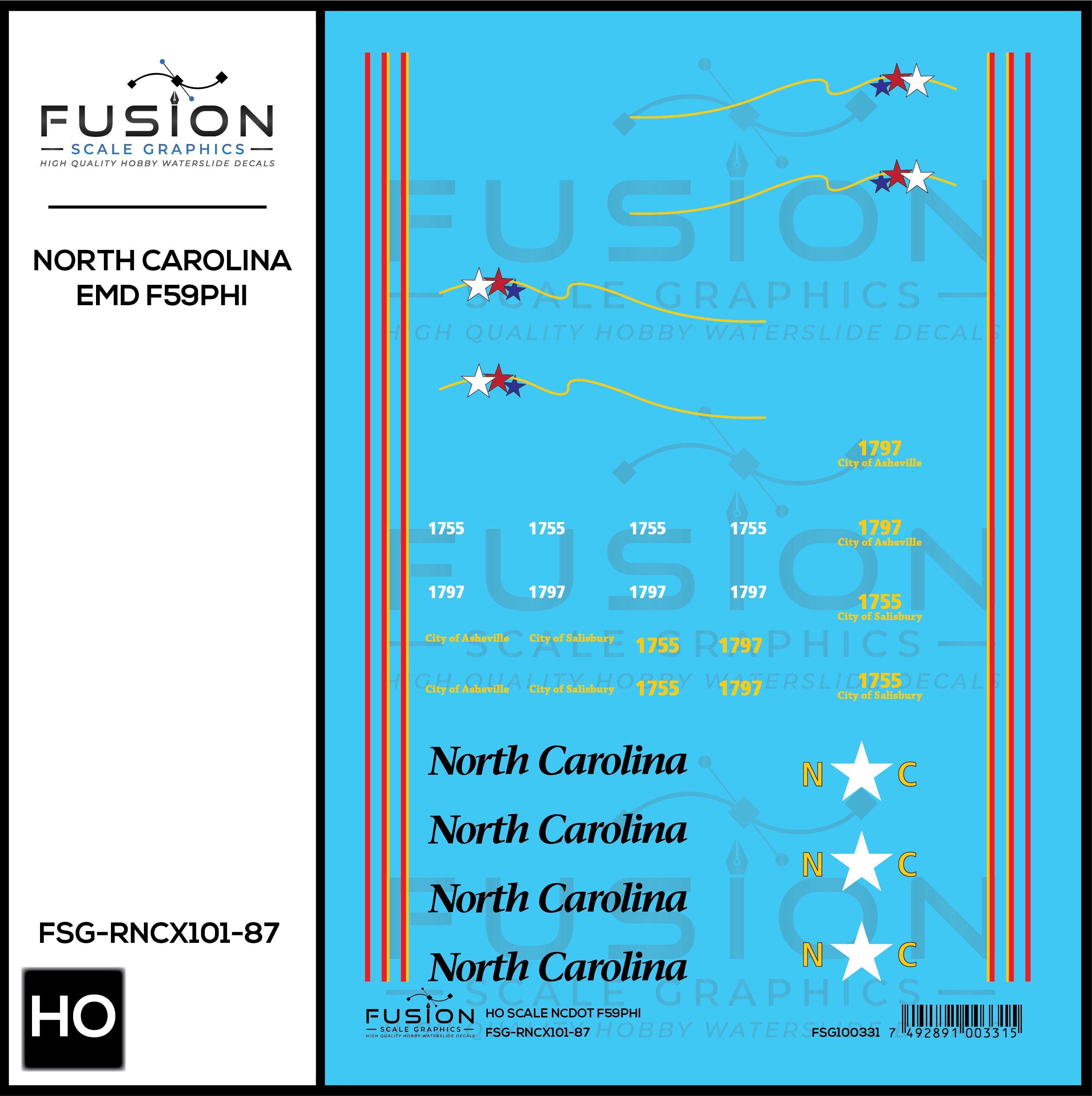 HO Scale North Carolina EMD F59PHI Locomotive Decal Set