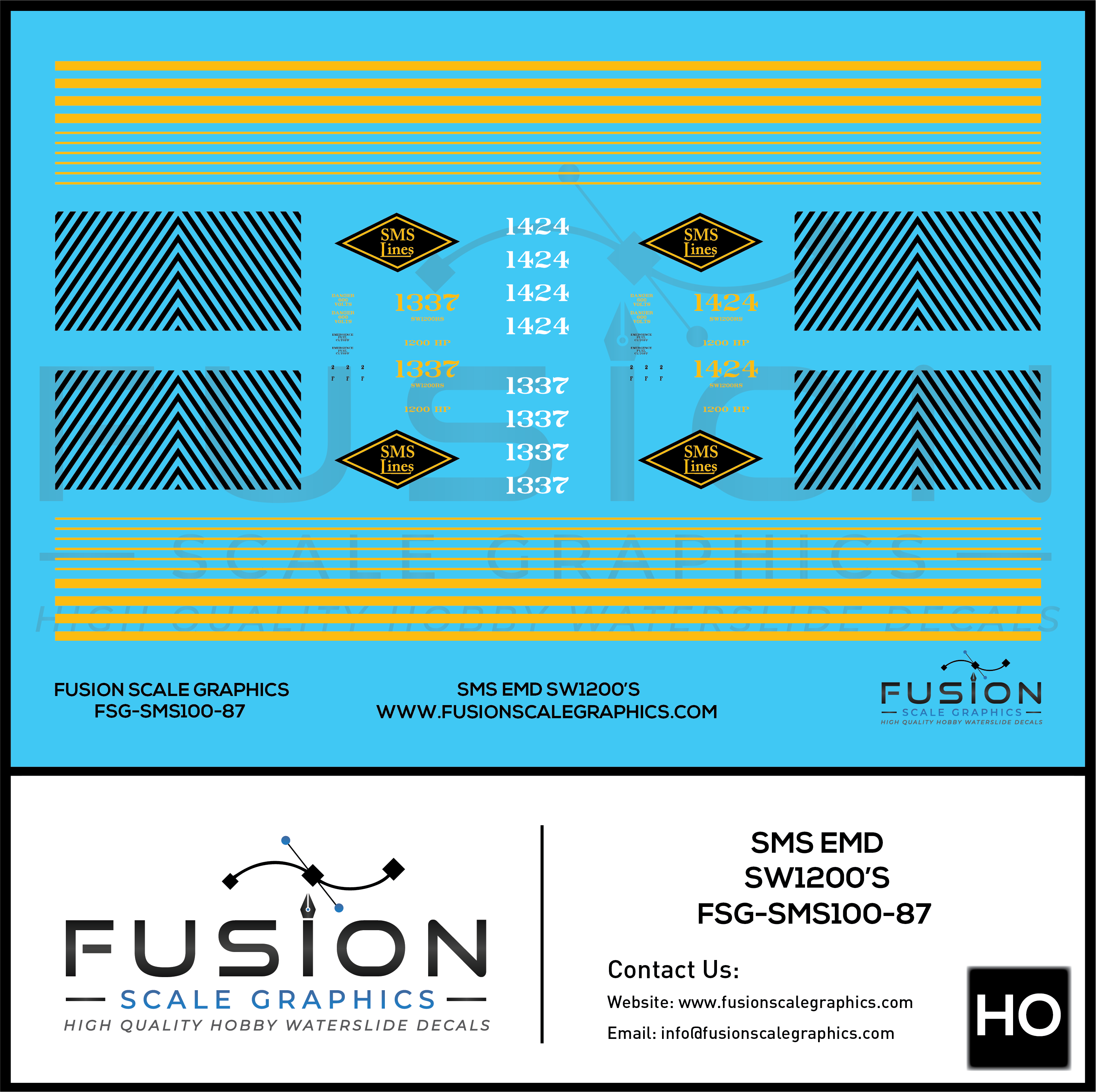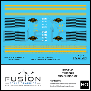 HO Scale SMS Lines EMD SW1200 Locomotives Decal Set