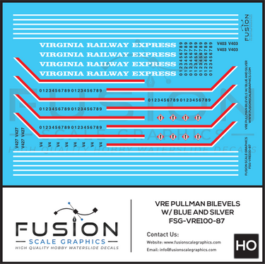 HO Scale VRE Virginia Railway Express Blue Top Pullman BiLevel Decal Set
