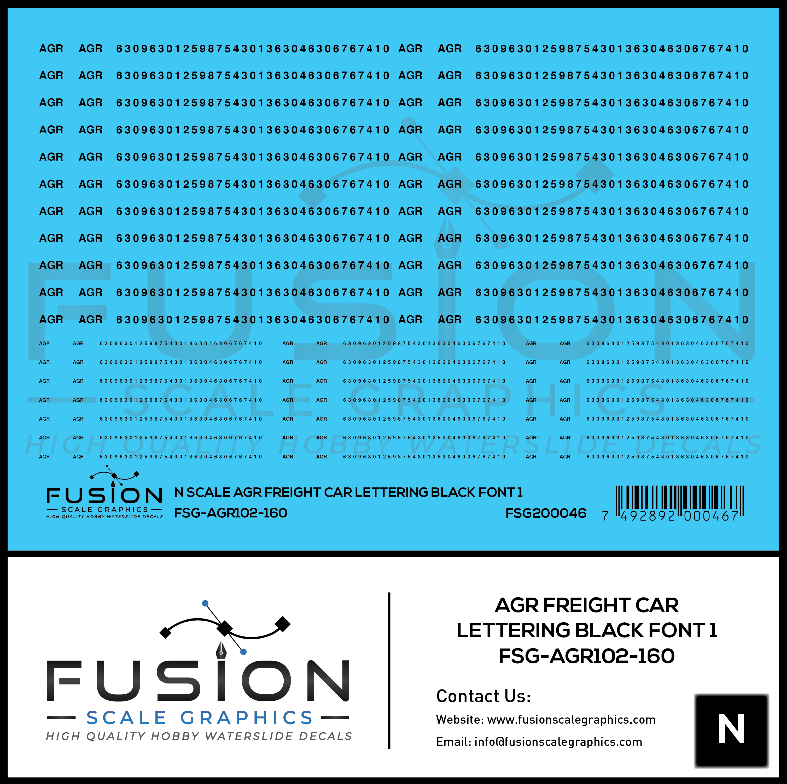 N Scale AGR Freight Car Lettering Black Font 1 Decal Set