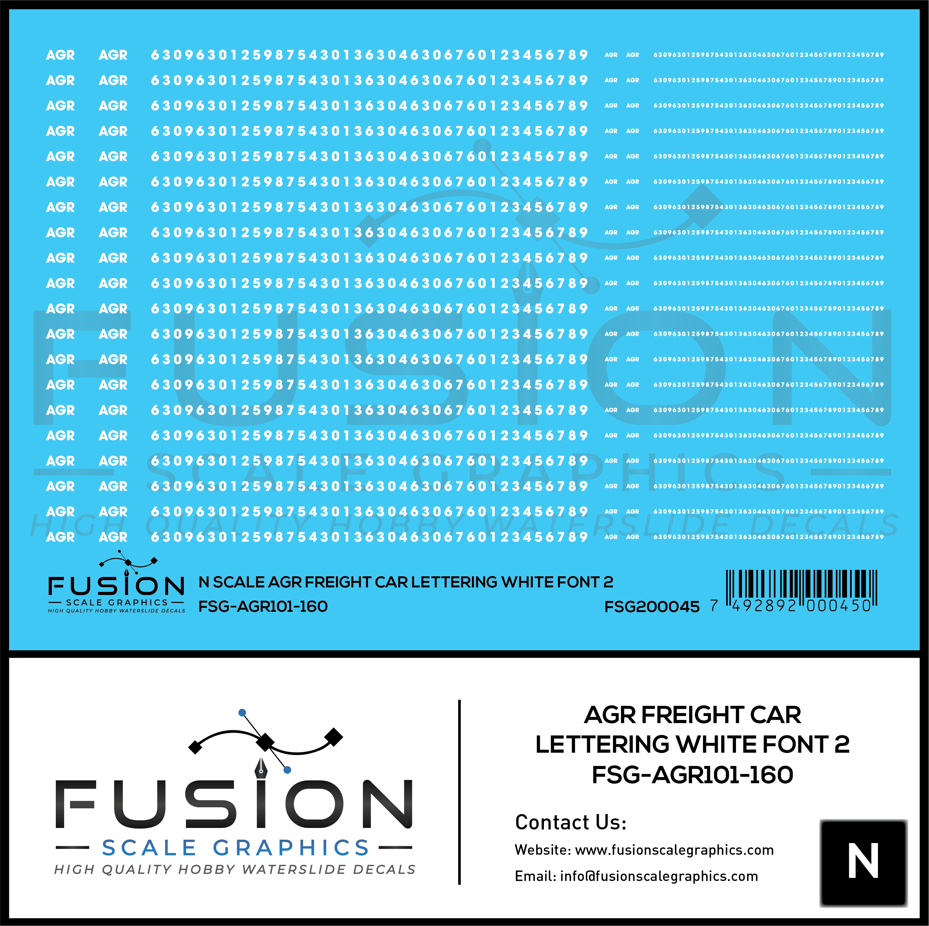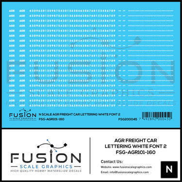 N Scale AGR Freight Car Lettering White Font 2 Decal Set