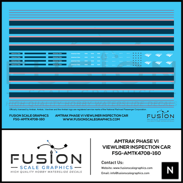 N Scale Amtrak Phase VI Viewliner Inspection Car Decal Set