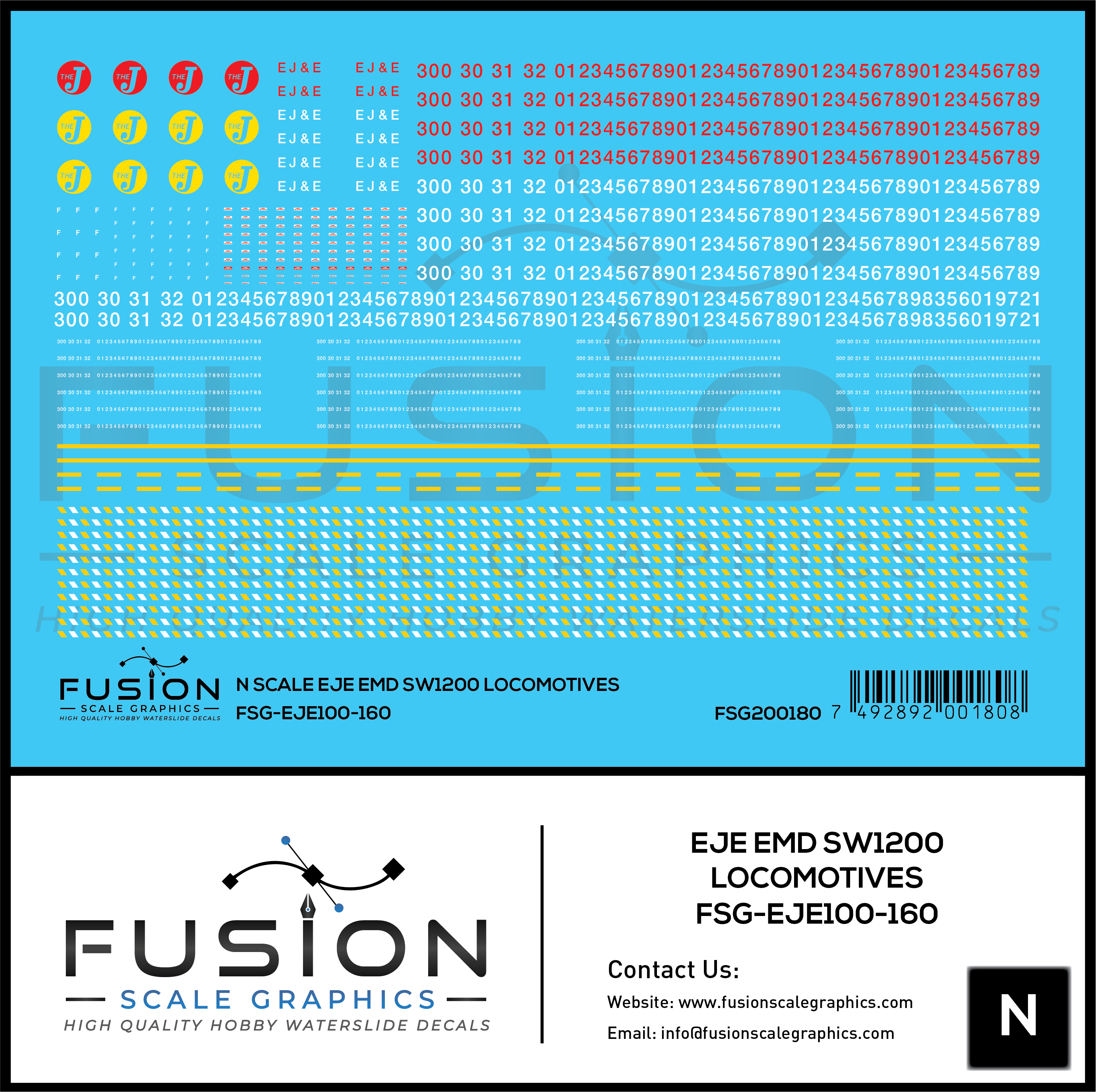 N Scale Elgin Joliet and Eastern EJE EMD SW1200 Locomotive Decal Set