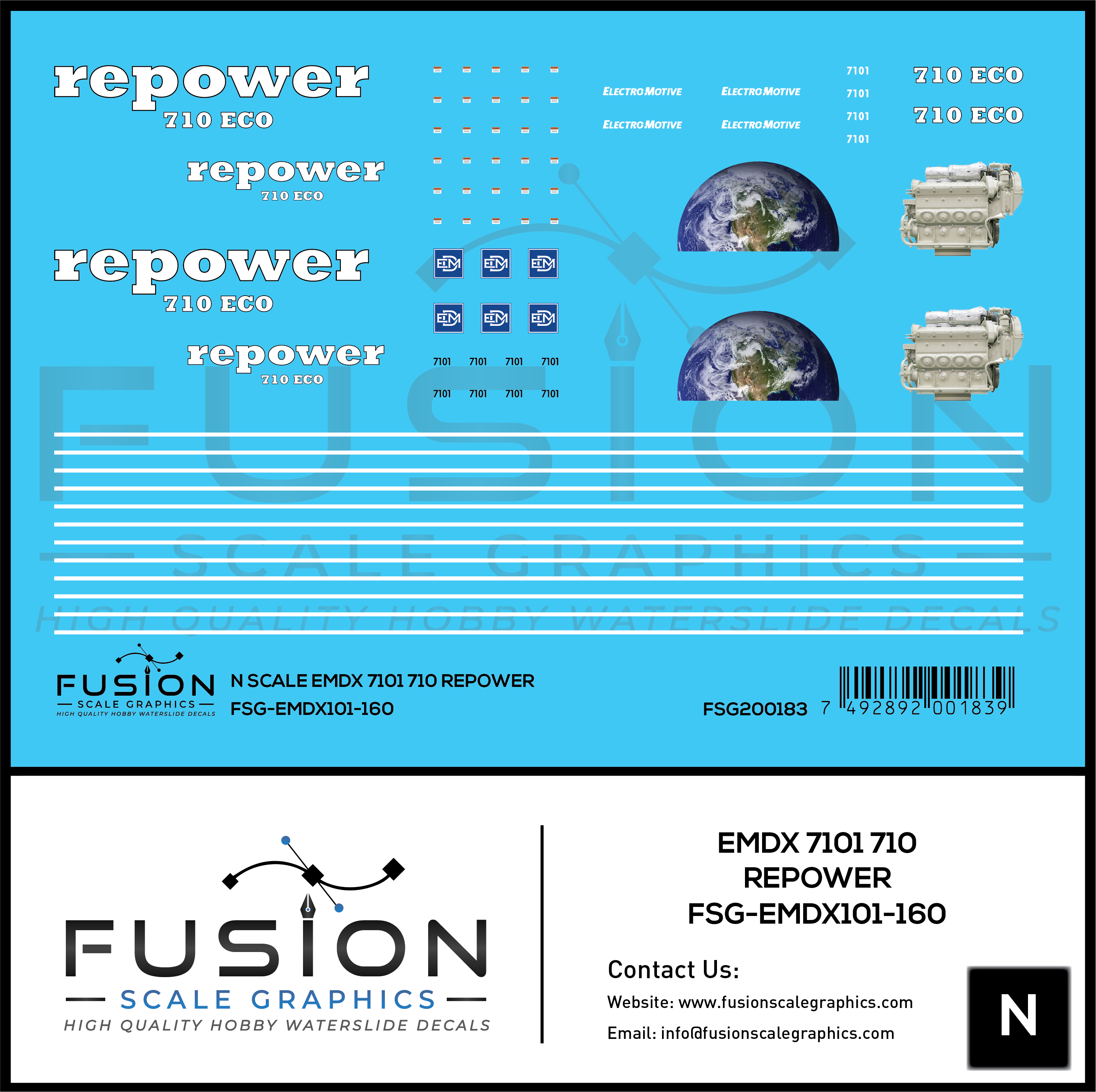 N Scale EMDX 7101 710 Repower Locomotive Decal Set