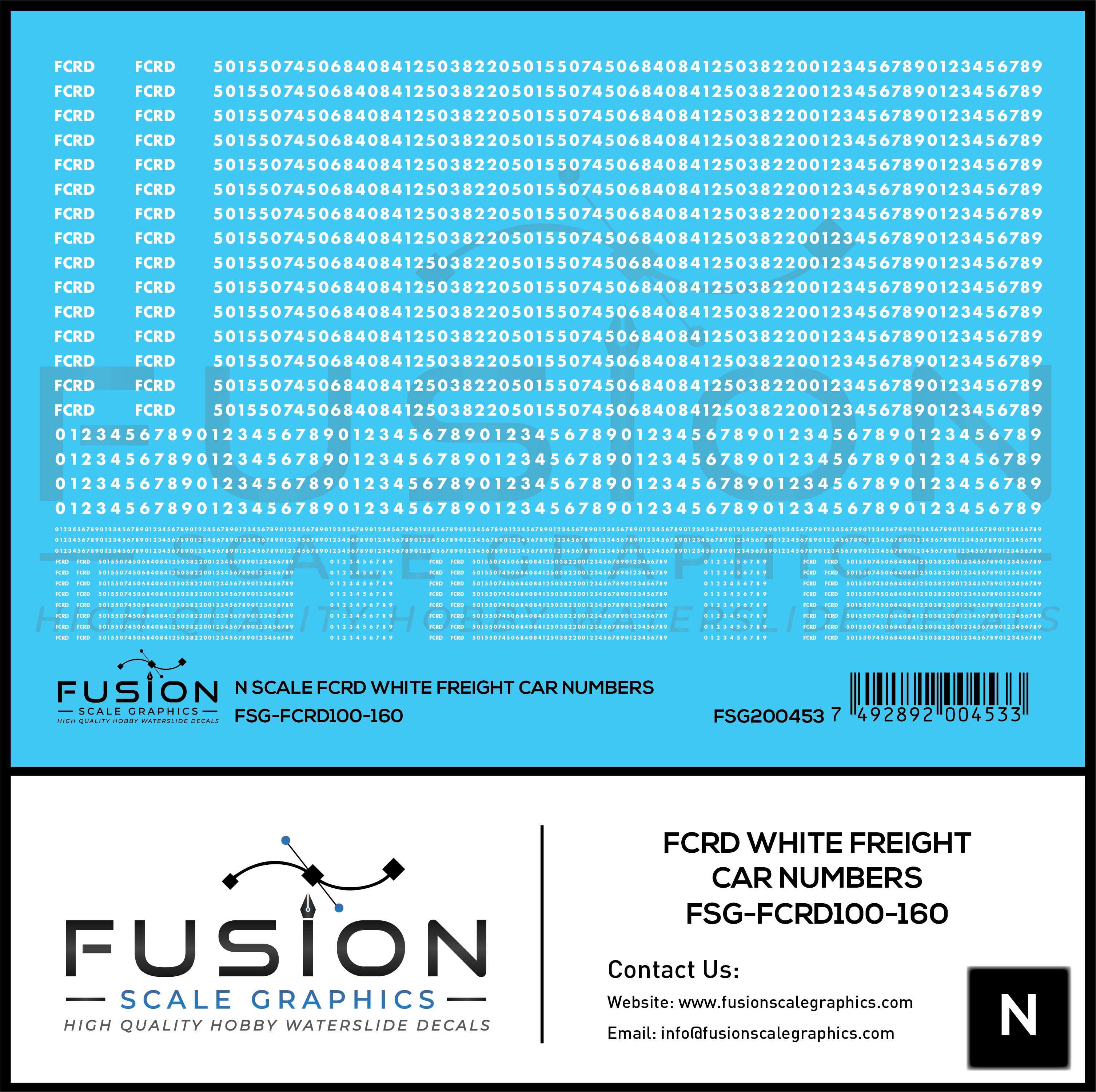 N Scale First Coast FCRD White Freight Car Numbers Decal Set