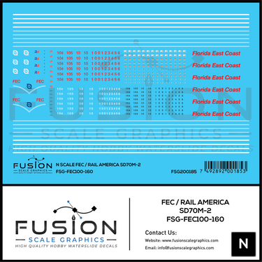 Home N Scale Florida East Coast/Rail America EMD SD70M-2 Locomotive Decal Set