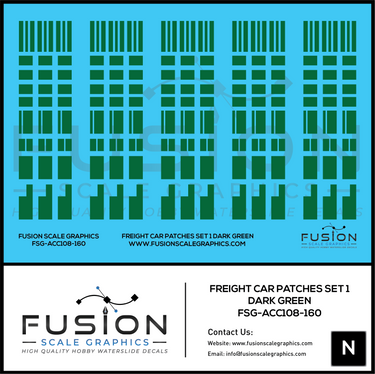 N Scale Freight Car Patches Set 1 Dark Green Decal Set
