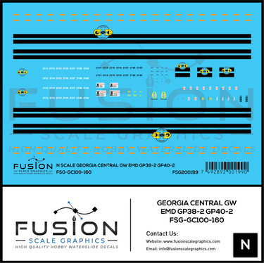N Scale Georgia Central GW EMD GP38-2 & GP40-2 Locomotives Decal Set