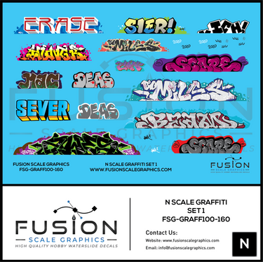 Fusion Scale Graphics produces high-quality, precision-printed water-slide decals designed to meet the needs of serious modelers. Manufactured in the USA using premium materials, each decal set delivers sharp detail, strong color opacity, and smooth application across HO, N, O, and other popular scales. Whether you’re restoring a favorite locomotive or adding accurate markings to rolling stock and custom projects, Fusion Scale Graphics provides the detail and durability to bring your models to life.