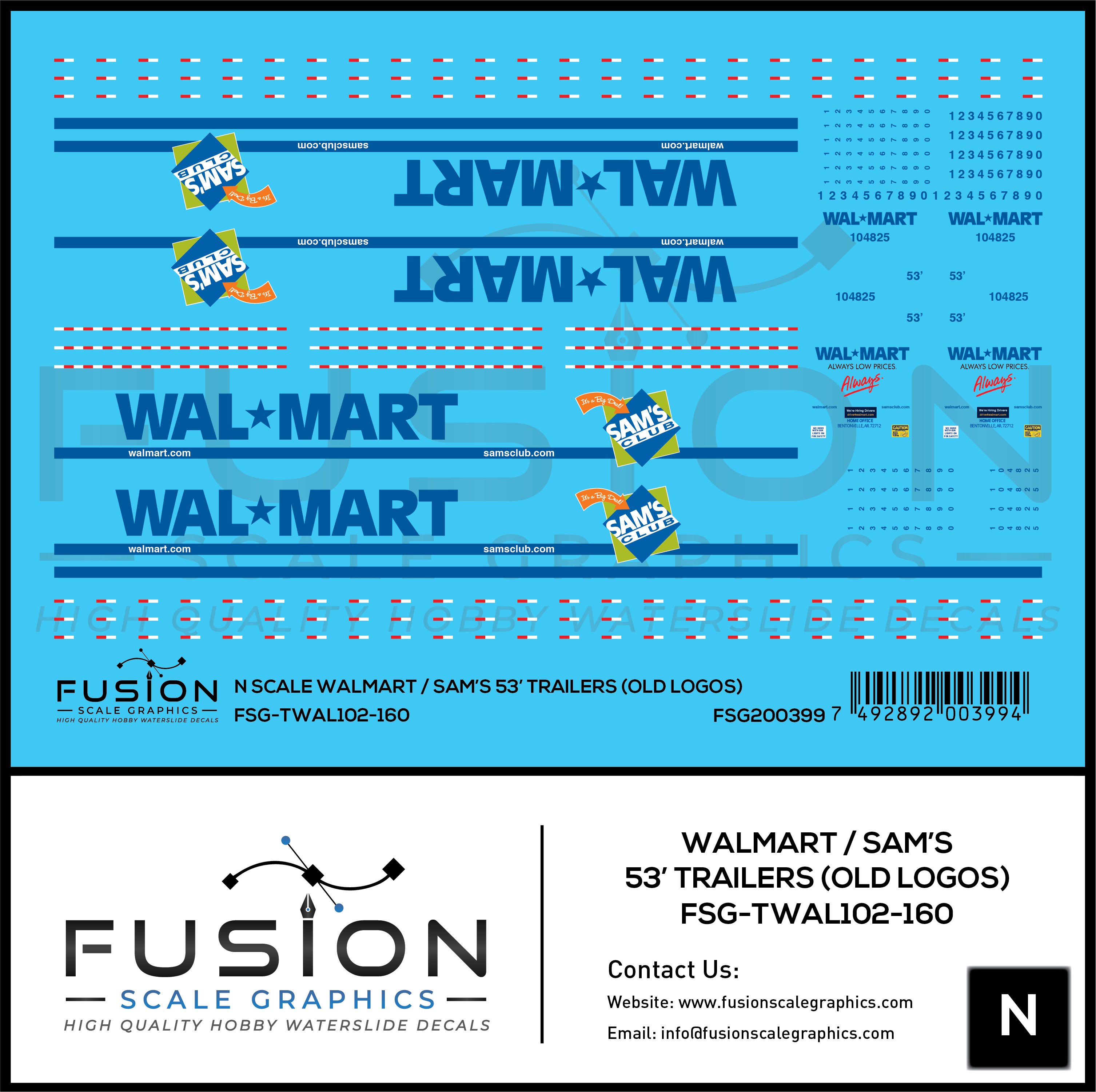N Scale Walmart / Sam's Club Old Logo 53' Trailers Decal Set