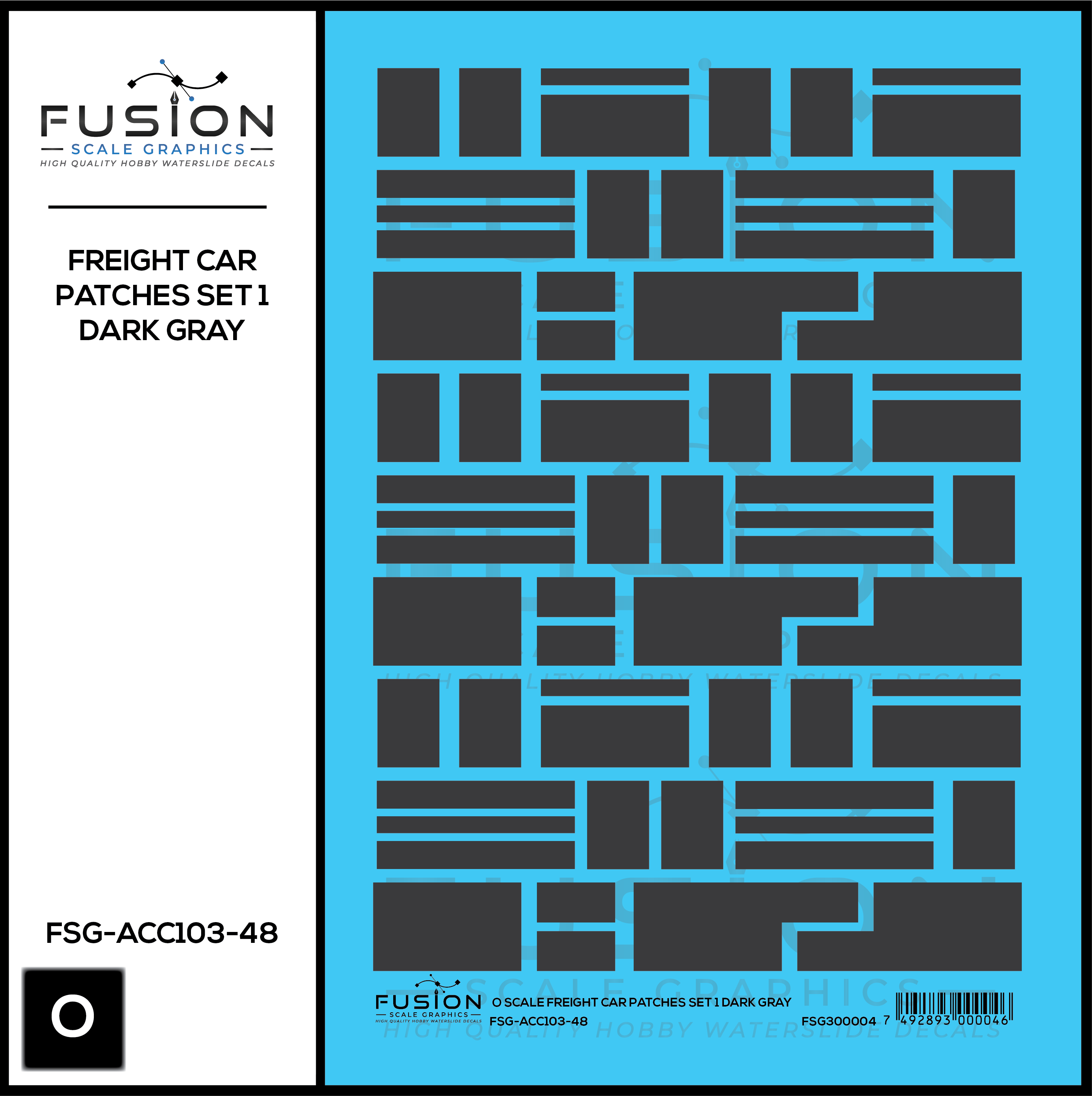 O Scale Freight Car Patches Set 1 Dark Gray Decal Set