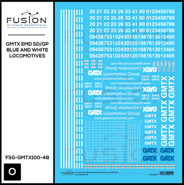 O Scale GMTX EMD SD/GP Blue and White Locomotives Decal Set