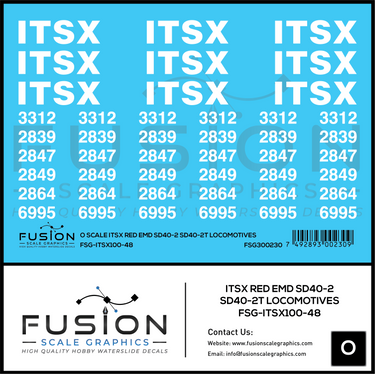 O Scale ITSX Red EMD SD40-2 / SD40-2T Locomotives Decal Set