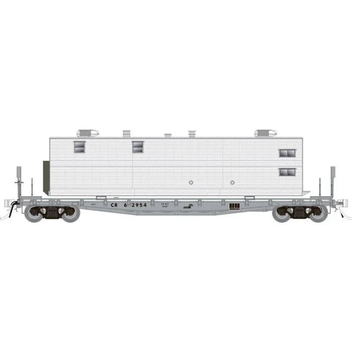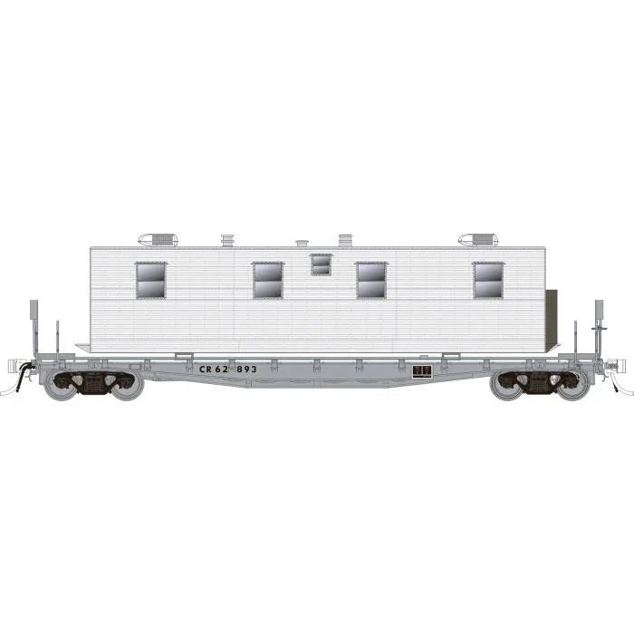 Conrail (and other railroads) mounted pre-fabricated “RV style” van on flat cars to house tack workers. Several common styles of van were built to serve the various needs of the work crews. Sleeping quarters were most common, but office and dining configurations were common sights in most work trains. These “Camp Trains” were common sights on Conrail and still on Norfolk Southern. Rapido’s camp cars are available in four different body styles: sleeper, diner, kitchen and office. In addition to vans mounted on F30A flat cars we offer each style van separately. They are perfect offices for yards, engine terminals, construction sites, in fact, all sorts of applications! Separate vans are painted in appropriate colors but are unlettered.