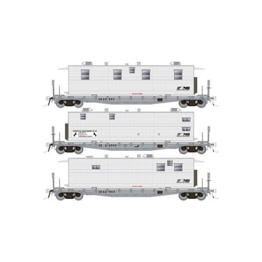 Rapido HO Norfolk Southern MOW F30A 50ft Flat Car w/Camp Van 3-Pack - RAP138104