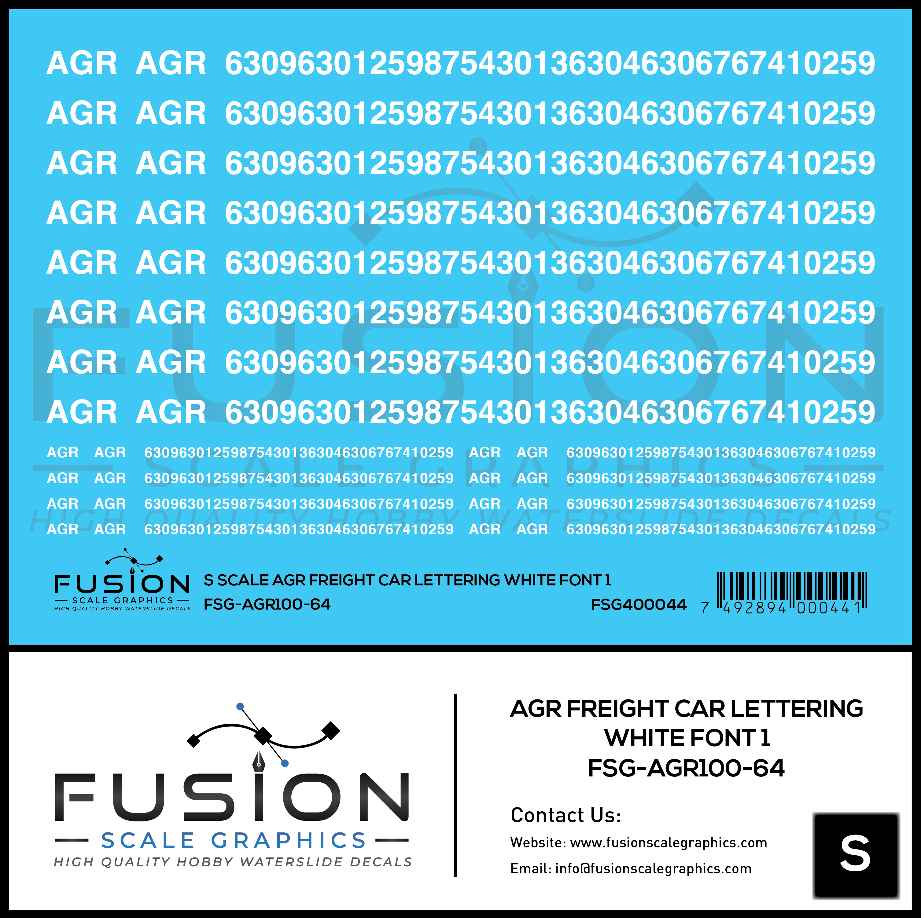 S Scale AGR Freight Car Lettering White Font 1 Decal Set