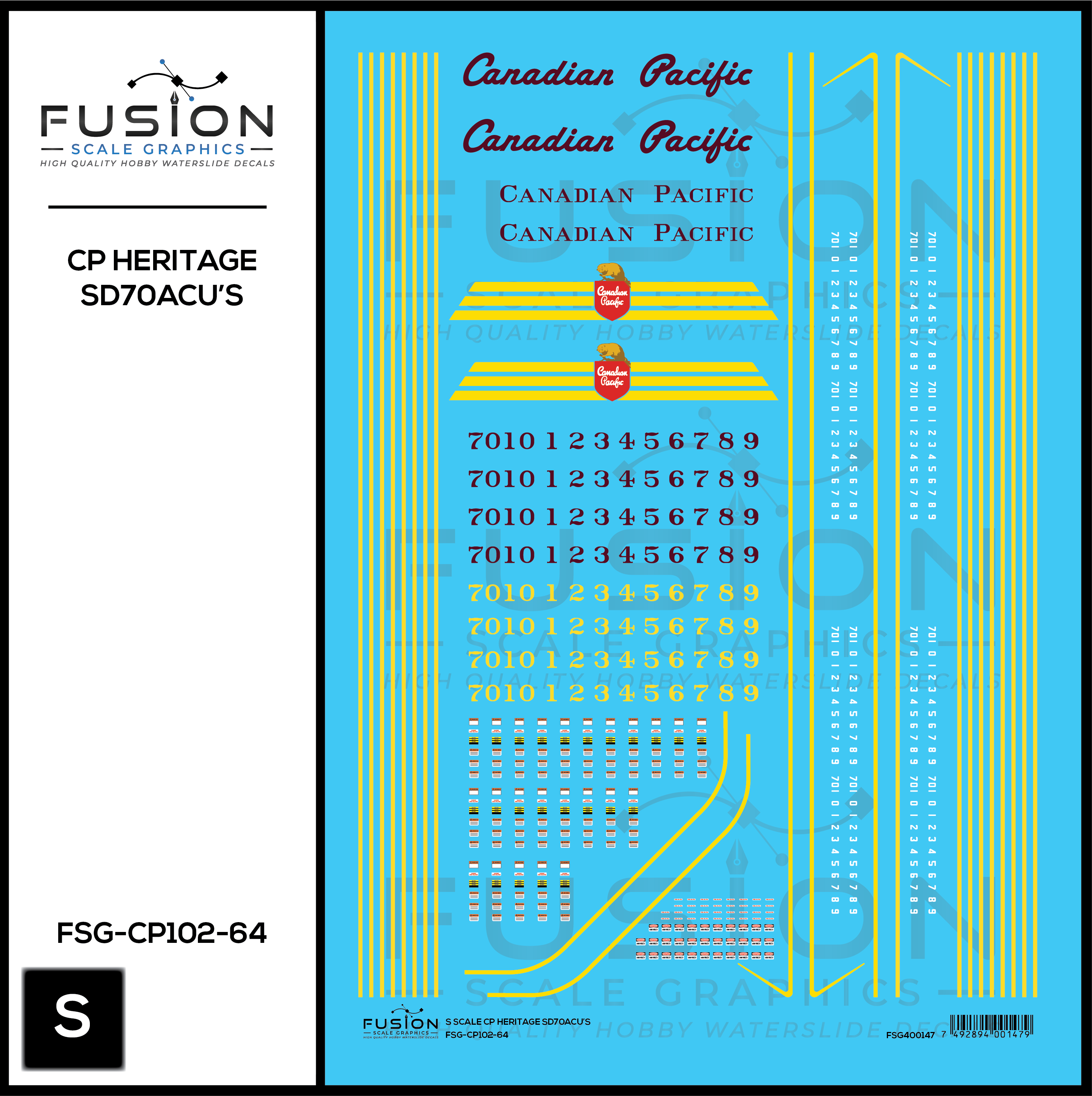 S Scale Canadian Pacific Heritage SD70ACU Locomotives Decal Set