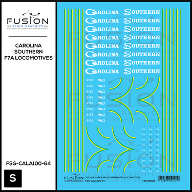 S Scale Carolina Southern EMD F7 Locomotives Decal Set