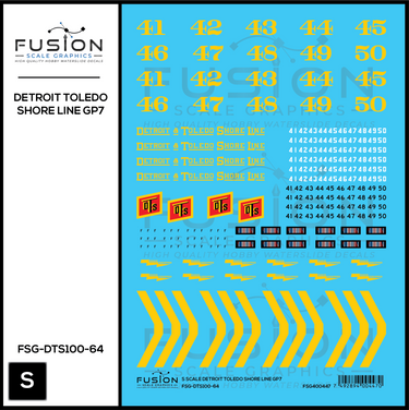 S Scale Detroit & Toledo Shoreline EMD GP7 Locomotive Decal Set