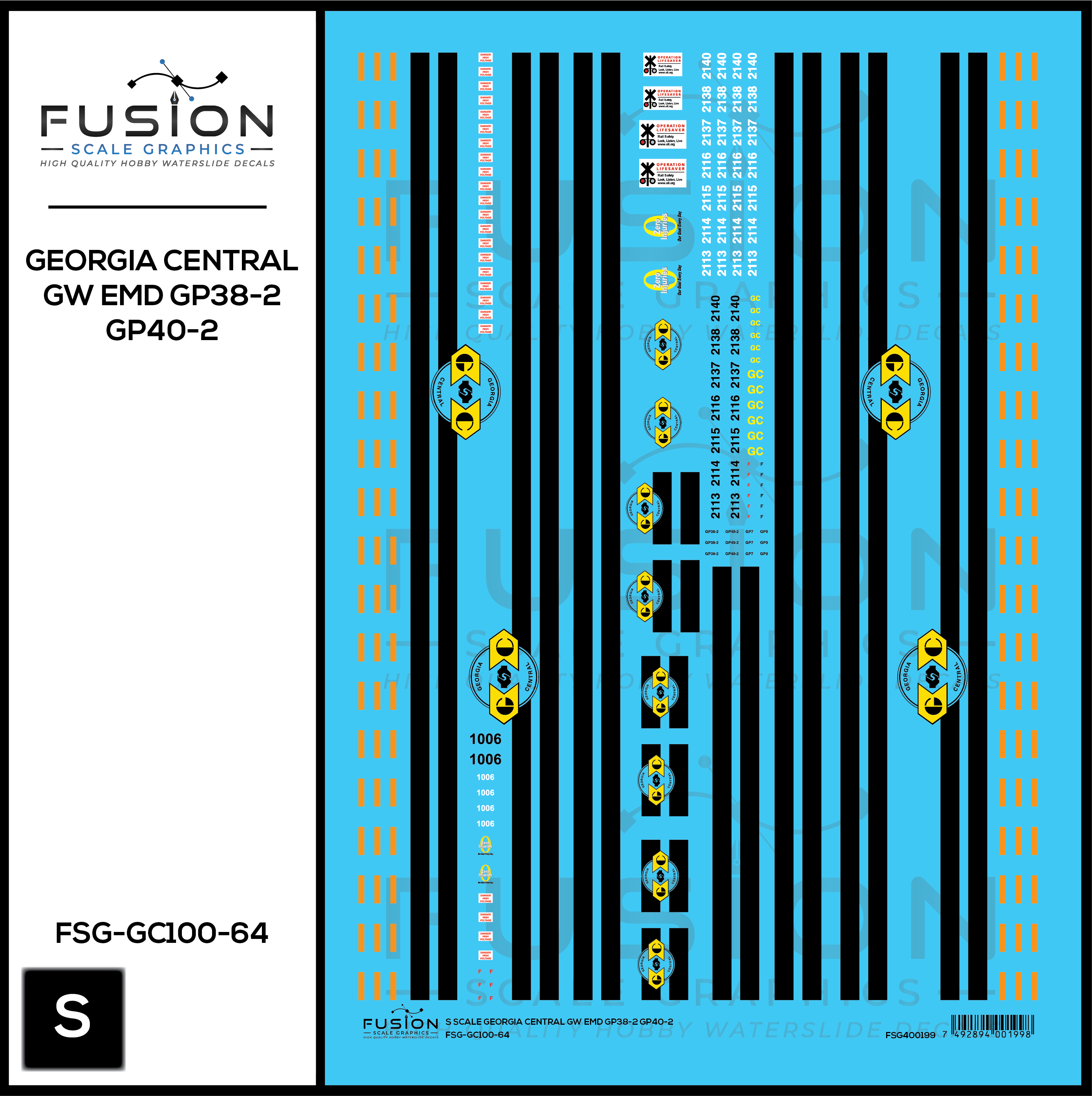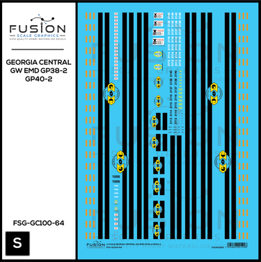 S Scale Georgia Central GW EMD GP38-2 & GP40-2 Locomotives Decal Set