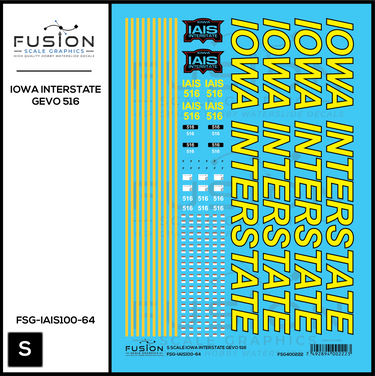S Scale Iowa Interstate Railroad GEVO 516 Locomotive Decal Set