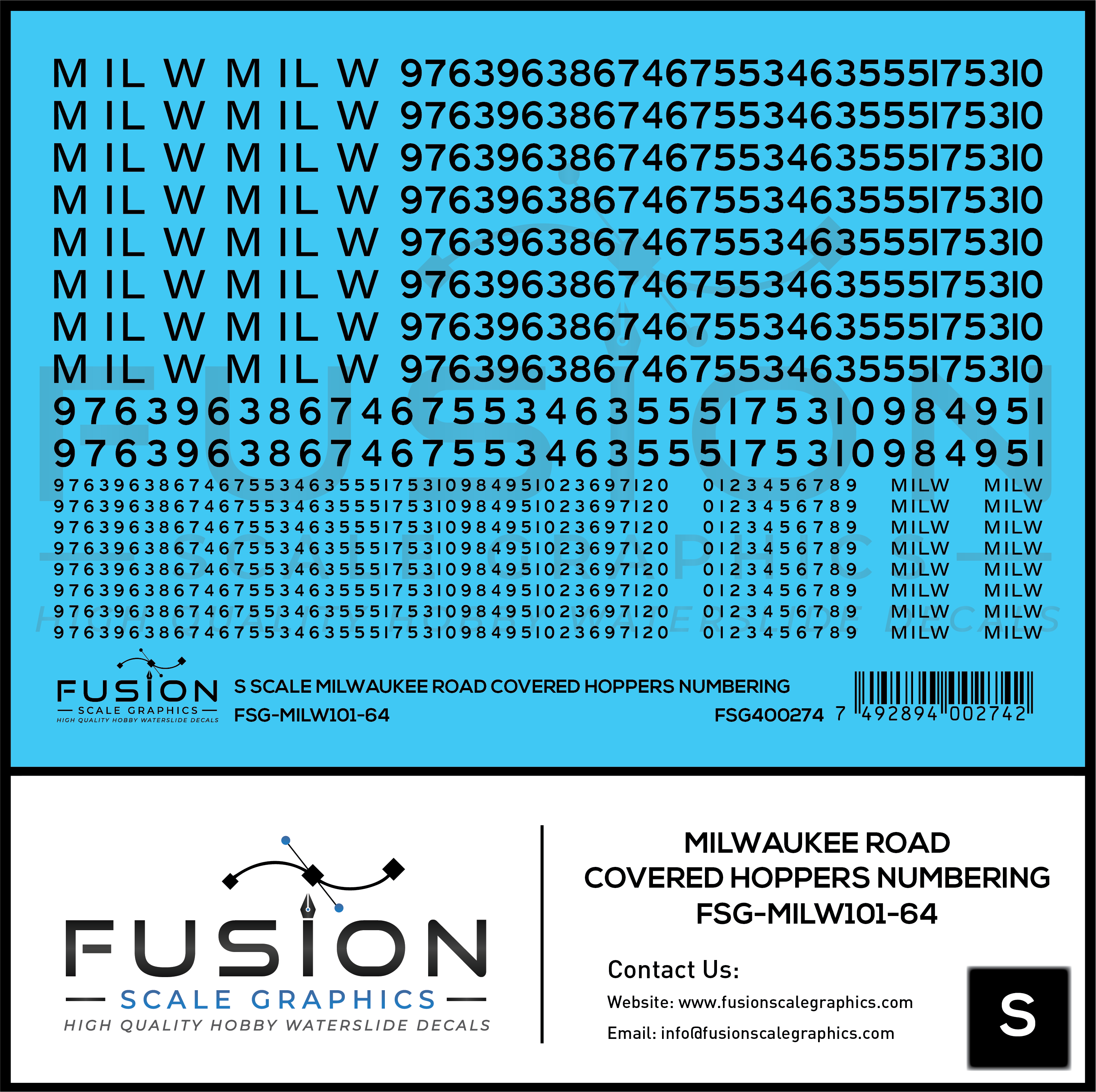 S Scale Milwaukee Road Covered Hoppers Numbering Decal Set