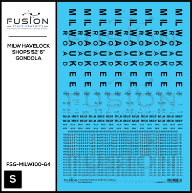 S Scale Milwaukee Road Havelock Shops 52' 6" Gondola Decal Set