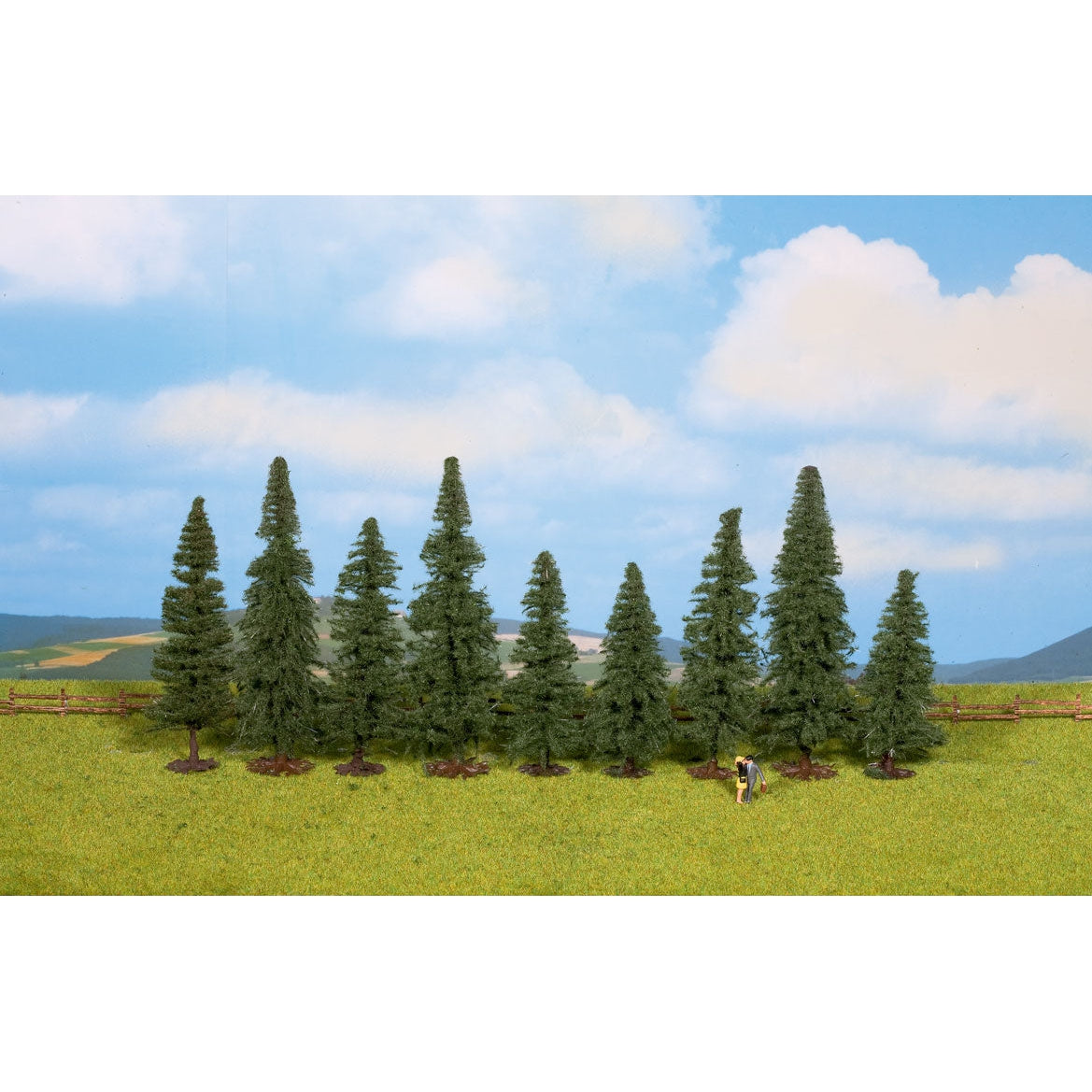 Walthers Fir Trees pkg(9) -- 3-1/8 to 4-3/4" 8 to 12cm Tall w/Flat Base