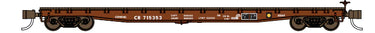 These 53'-6" flatcars were constructed with a welded fish belly steel frame in contrast to the cast steel GSI frame. The fish belly frame provided an optimal distribution of tension and compression forces from the center of the car to the bolsters. Think of it as a bridge. In addition, fabricating a welded frame was far less labor intensive than an equivalent riveted frame. The welded frame proved extremely durable holding up to rugged service. As these flat cars aged-out due to ARR interchange age limit, they found its way into many years in maintenance-of-way service. A number of builders constructed these flat cars such as the Pacific Car & Foundry (P.C. & F.), Marine Industries (Canada), Pullman-Standard, Bethelehem Steel, and including railroad car shops such as the Western Pacific.